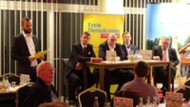 Dass die Energiewende nicht ohne den konsequenten Einsatz innovativer Technologien geht, davon zeigten sich alle am Tisch überzeugt: der Lingener Bundestagsabgeordnete Jens Beeck (FDP), Ratsherr Ingo Lüttecke aus Langen (FDP) und Gastgeber Paul Koldehoff, Inhaber des gleichnamigen Unternehmens für effiziente Energietechnik. Mehr noch: In einem lebhaften Gespräch zwischen Politikern und Unternehmer nach einem Betriebsrundgang im Hause Koldehoff bekannten sich die Emsländer unisono zu Innovation und Wettbewerb – und gegen Bürokratie und Subventionen nach dem Erneuerbare-Energien-Gesetz (EEG).